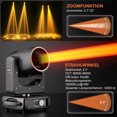 295W HID Moving Head Spotlight 250W HID + RGB LED Illuminance: 162.000 Lux op 10 meter 48-facet Prism Effecten met Regenboog/haze Effecten DMX512/RDM Interface